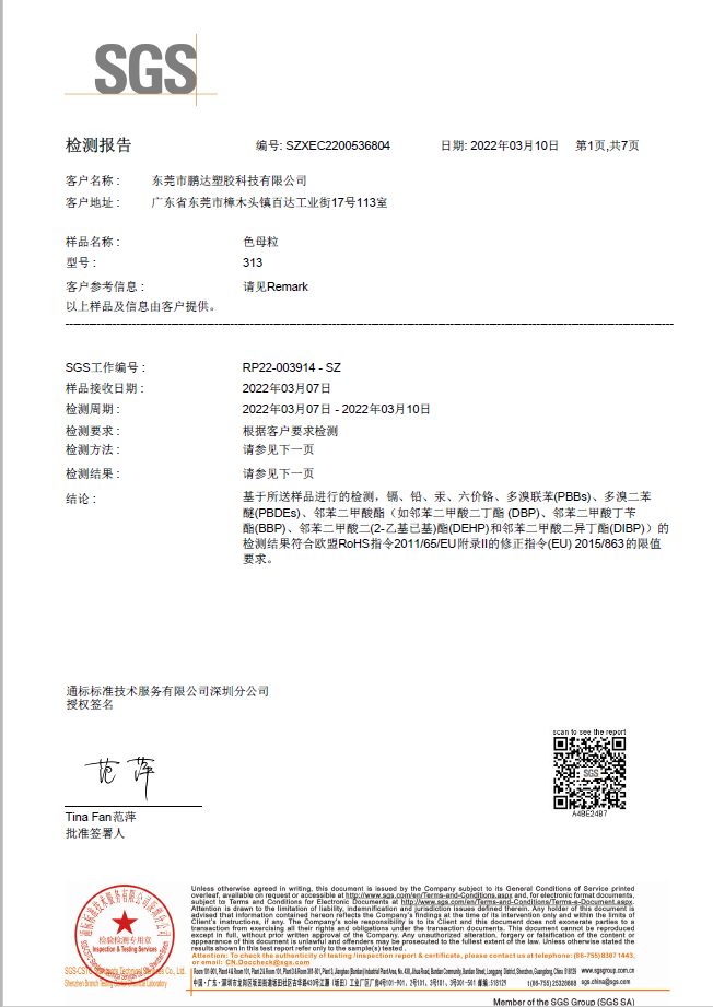 和鵬達(dá)塑膠科技有限公司合作很長(zhǎng)一段時(shí)間了,他們的產(chǎn)品質(zhì)量好,服務(wù)到位,且原材料都通過SGS測(cè)試符合歐盟REACH,PaHS、ROHS及無(wú)鹵指令,備有美國(guó)FDA級(jí)食品接觸規(guī)格物料,和他們合作完全沒有后顧之憂!
